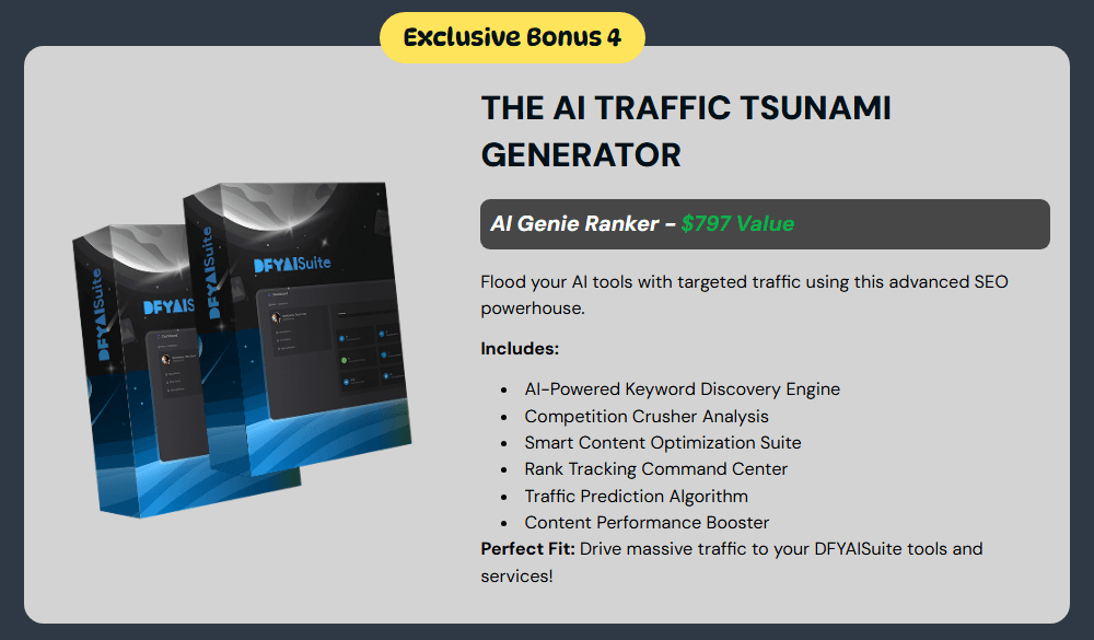 If you’re looking for an affordable, future-proof way to run your online business while also having the option to serve clients, DFY AI Suite is a smart investment.