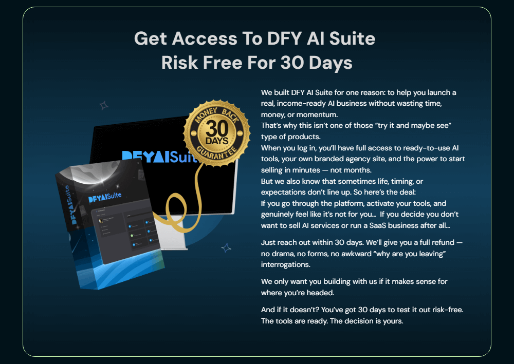 👉 Ready to replace subscription sprawl with a single, revenue-ready toolkit? Grab DFY AI Suite today and start deploying client-worthy assets in hours, not weeks.