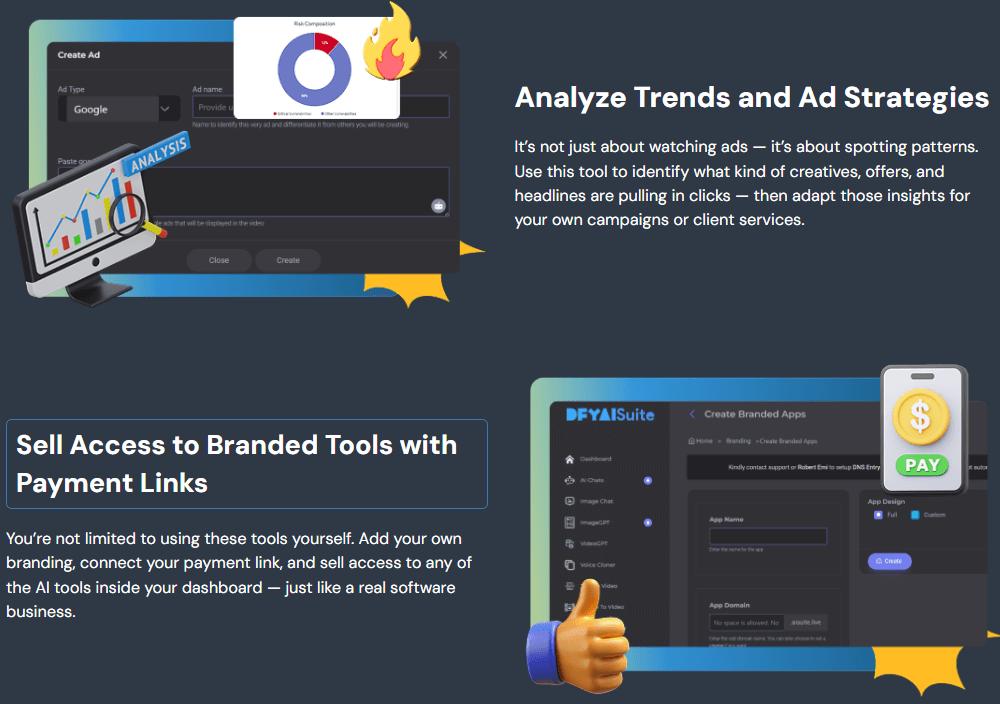 From creating high-converting landing pages and video scripts to generating blog posts, graphics, and traffic campaigns, this app offers a complete digital business ecosystem. Whether you’re an entrepreneur, freelancer, agency, or coach, DFY AI Suite is built to save time, reduce costs, and accelerate results.
